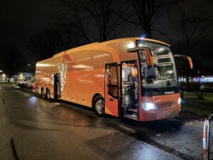 We vertrek een half uurtje eerder om 15.30u vanaf parkeerterrein BVV Barendrecht met een luxe KNVB spelersbus (i.v.m. mogelijke files richting Utrecht).